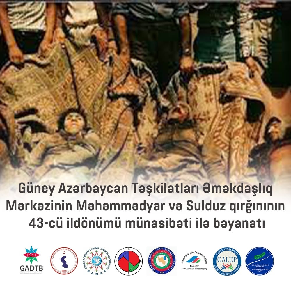 Güney Azərbaycan Təşkilatları Əməkdaşlıq Mərkəzinin Məhəmmədyar və Sulduz qırğınının 43-cü ildönümü münasibəti ilə bəyanatı
