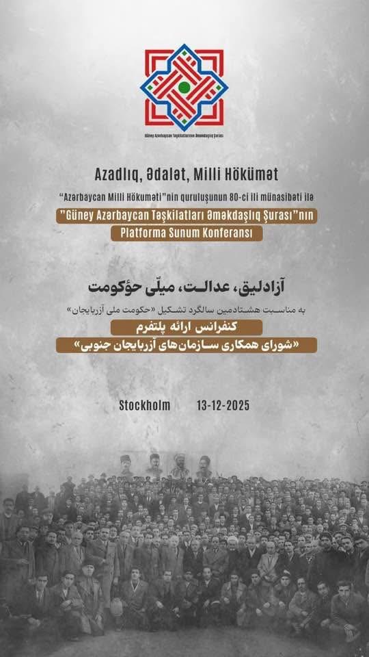 Güney Azərbaycan Milli Hökumətinin quruluşunun 80-ci ildönümü münasibətilə 2025-ci il 13 dekabr tarixində İsveçin Stokholm şəhərində keçirilən “Güney Azərbaycan Təşkilatları Əməkdaşlıq Şurası”nın platforma təqdimat konfransı çərçivəsində, Güney Azərbaycan İstiqlal Partiyasının Rəhbərlik Şurasının üzvü sayın Haray Fəthipur çıxış edərək partiyanın rəsmi bəyanatını oxumuşdur.